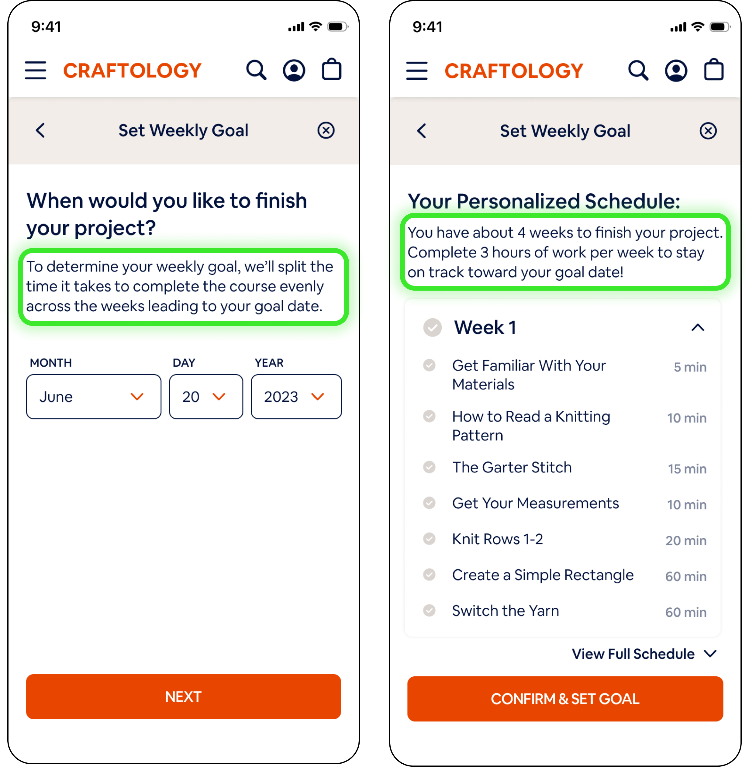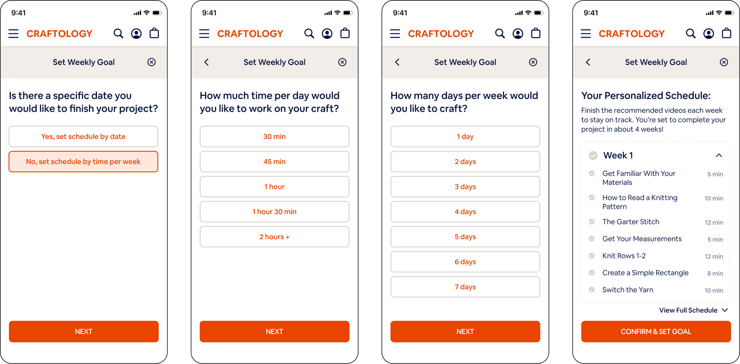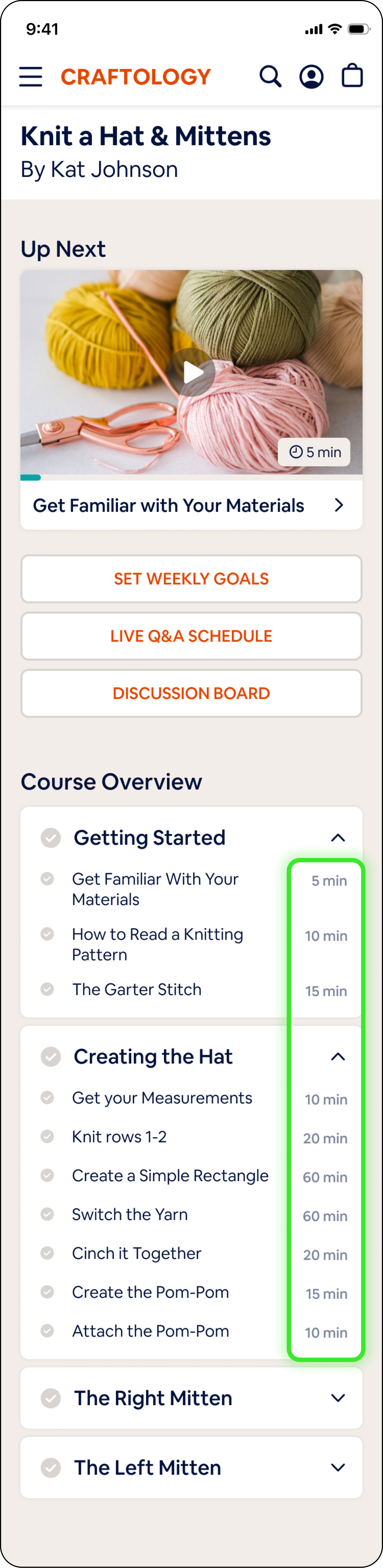 As a young, working professional, I want to establish my time commitment goals for this craft course, so I can motivate myself to stick with it and finish my project.