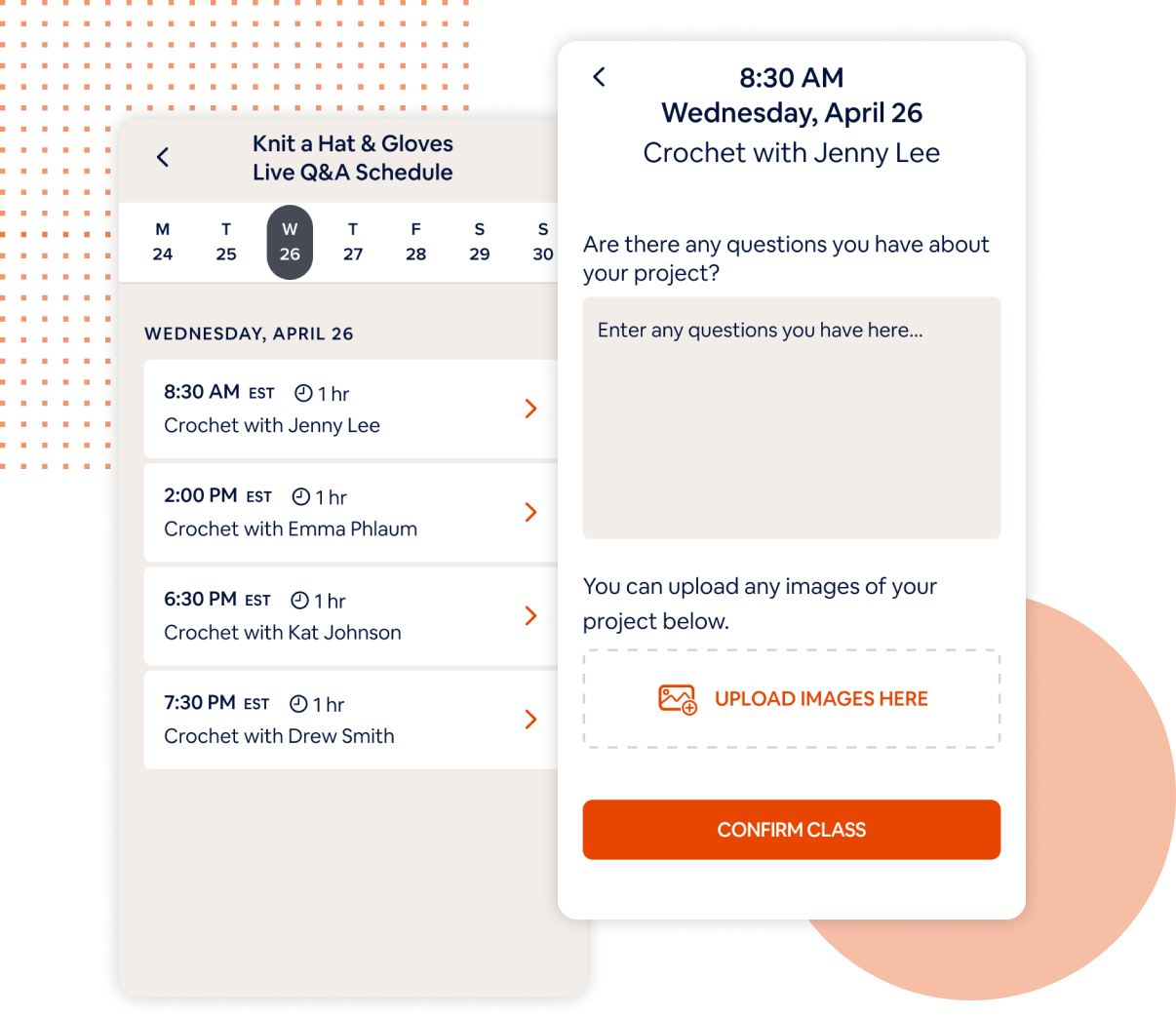 As a confused crafter, I want to sign-up for a live Q & A session, so I can ask an expert questions about how to execute my project.
