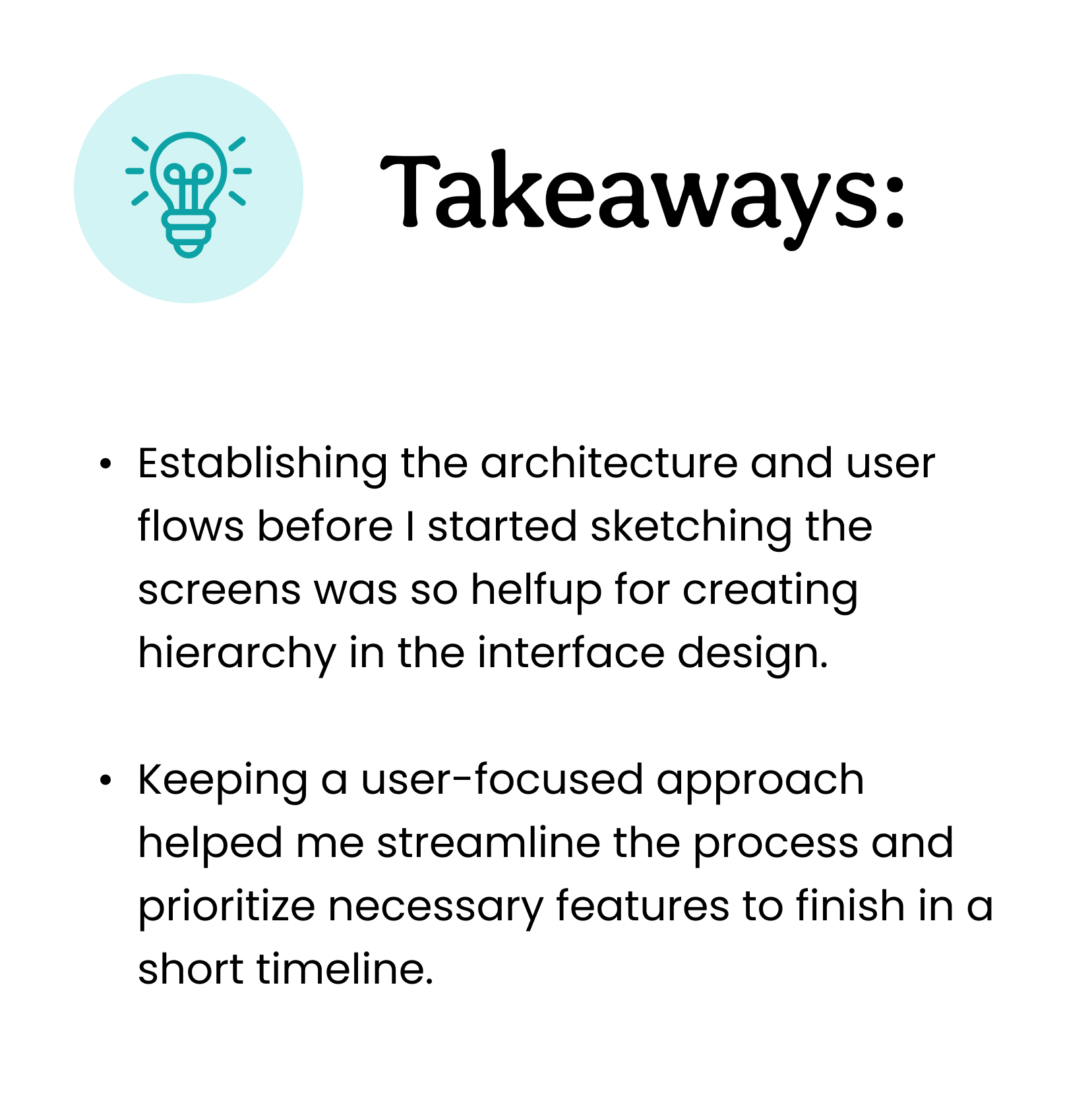 Usability tests provided me with valuable insights into what areas of my design needed iteration. I narrowed down to the 4 most impactful changes I could make to my prototype.