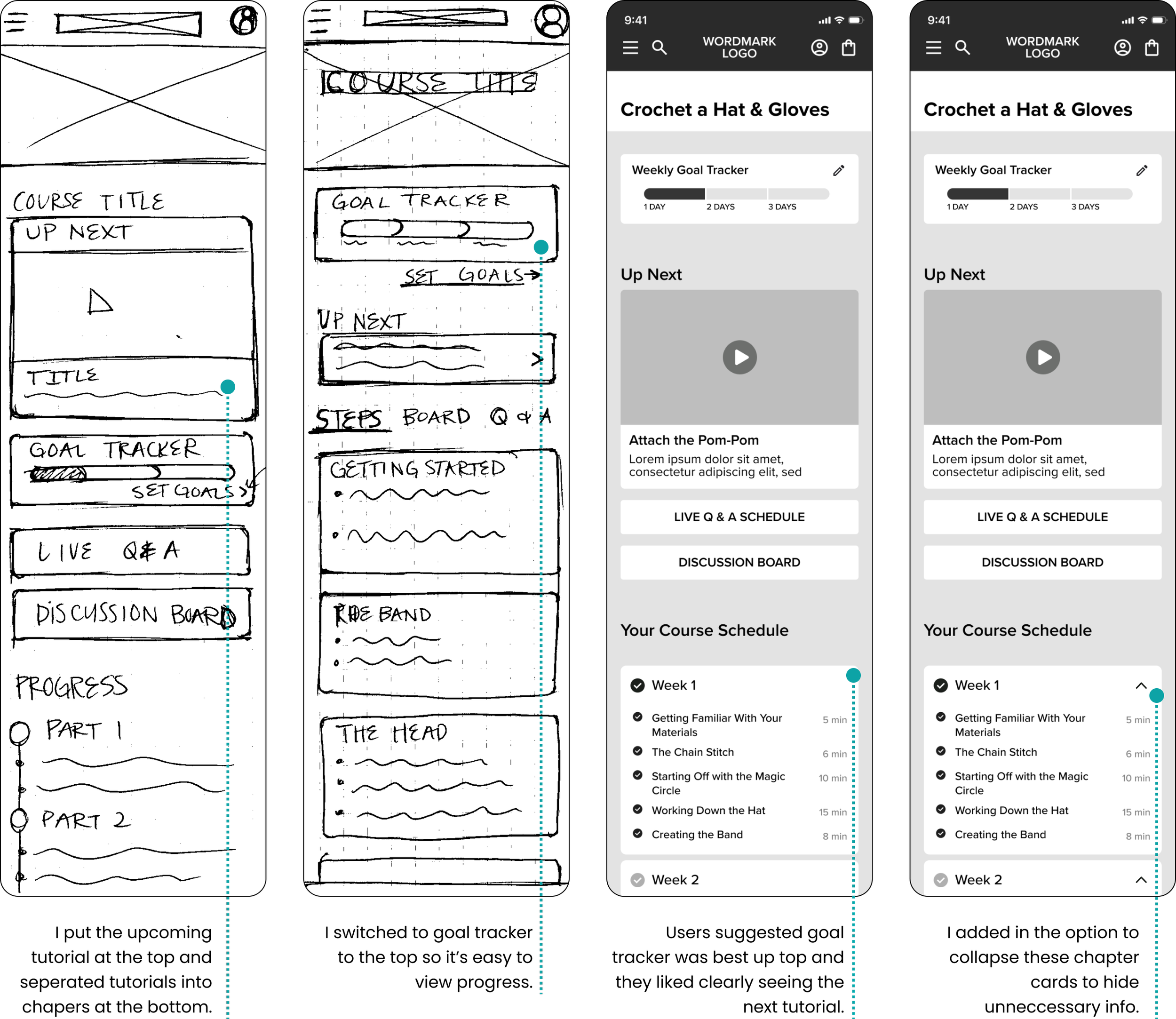 I analyzed online craft tutorial websites and discovered they’re missing accountability tools to keep crafters on track. They’re also lacking the ability to gain feedback on projects.