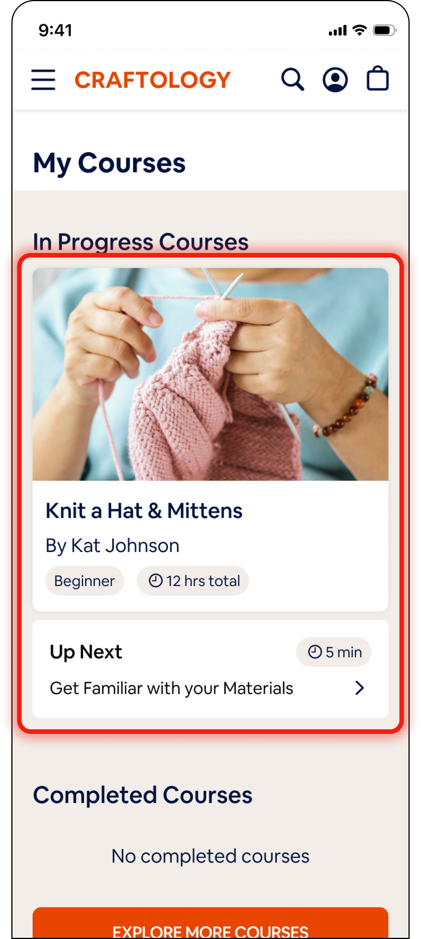 Adding a bright button prompts users to click into the course page and removing the ‘up next’ button reduces confusion that they may already be on the course page.
