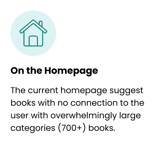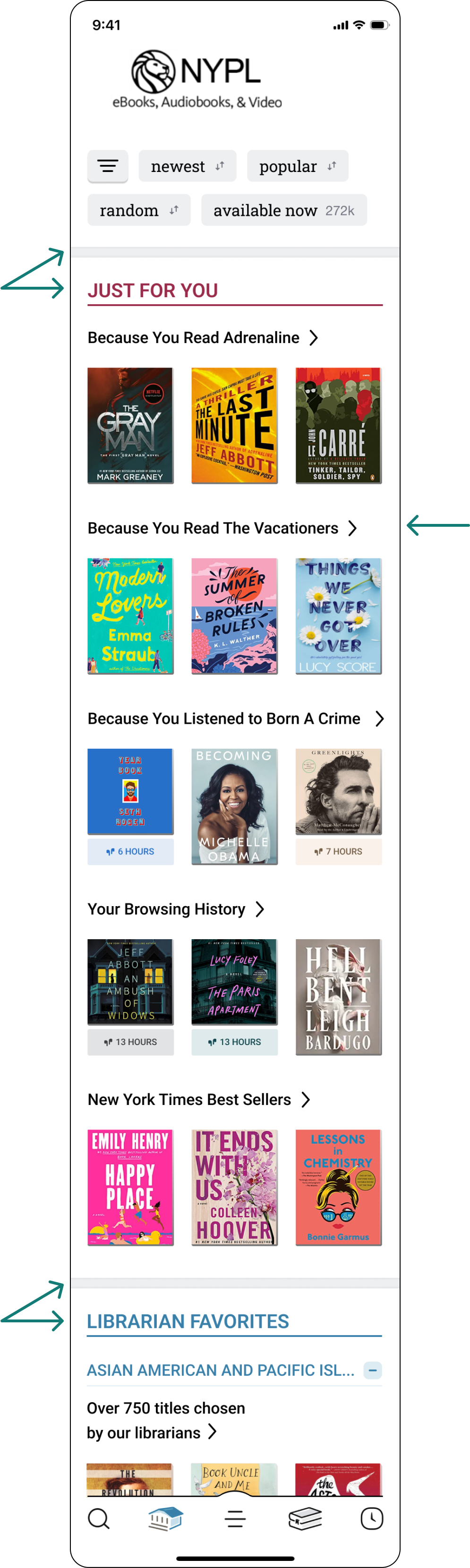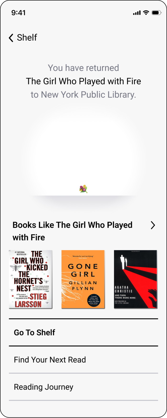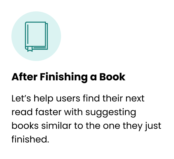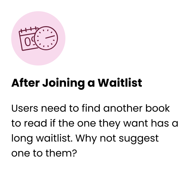 Place suggestions throughout the app when users need them most: when they first open the app, join a long waitlist or have just finished a book they enjoyed.
